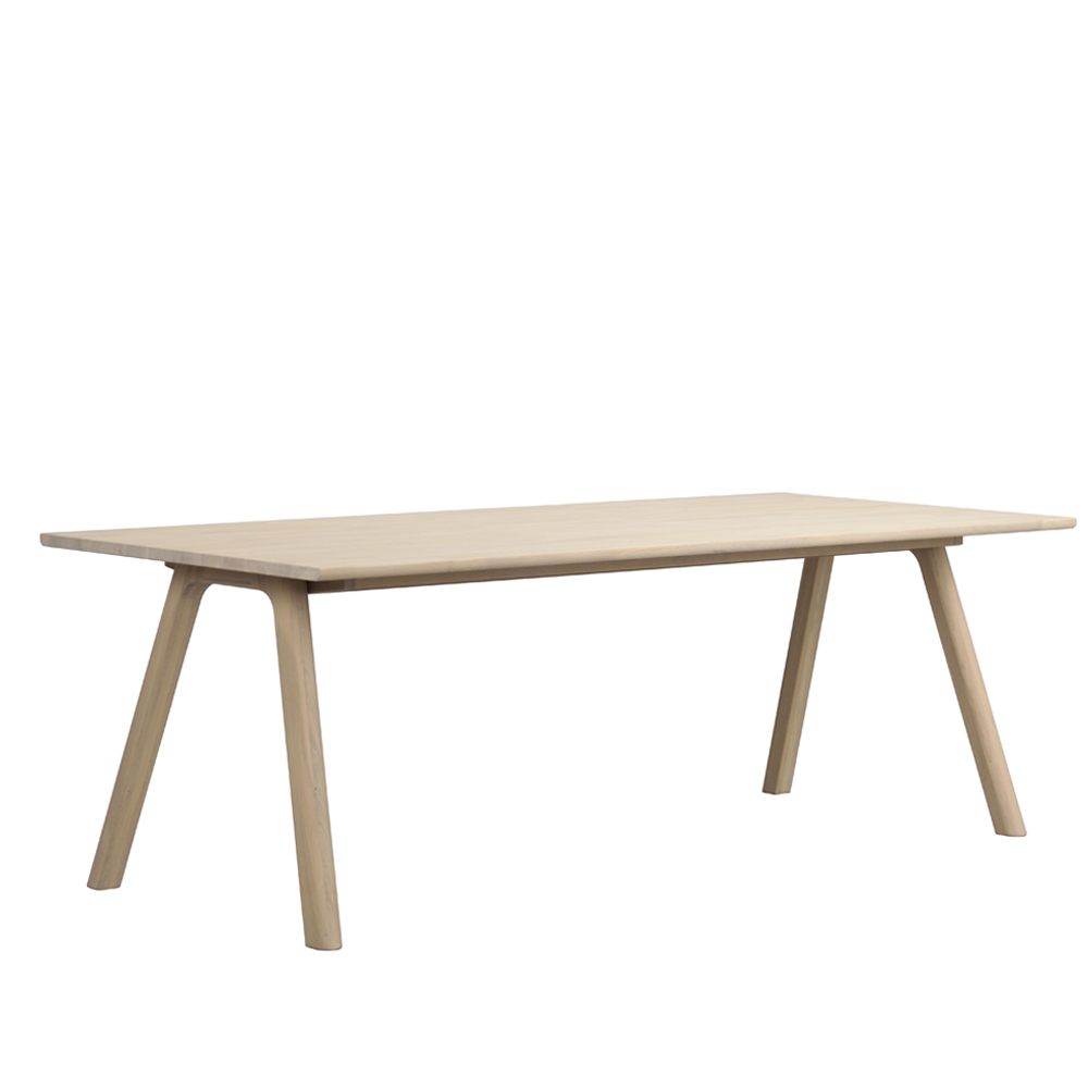 Clapperton är ett massivt träbord med ett tydligt formspråk och högt designvärde. Tillverkat i Europa med omtanke om både miljö och estetik. Det FSC®-certifierade träet är fingerskarvat för att skapa en kraftfull känsla och ett levande uttryck, samt behandlat med Rubio-olja som lyfter fram träets naturliga struktur och unika färgton. Designen kombinerar raka och rundade linjer på ett harmoniskt sätt. De utställda benen möts i ett elegant snitt, där benparet bildar ett gemensamt stycke, en subtil men sofistikerad detalj som förhöjer bordets uttryck. Resultatet är ett dynamiskt och lätt formspråk, som gör Clapperton till ett blickfång i det moderna hemmet.