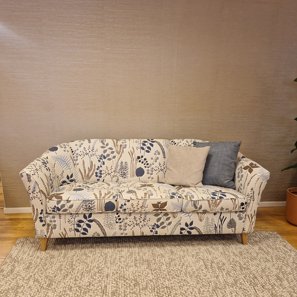 Mått: L 188 D 80 H 78 cm Tyg: Botanik blå Ben: Oljad ek